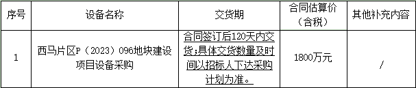 1.1項目名稱:西馬片區(qū)P(2023)096地塊建設項目設備采購